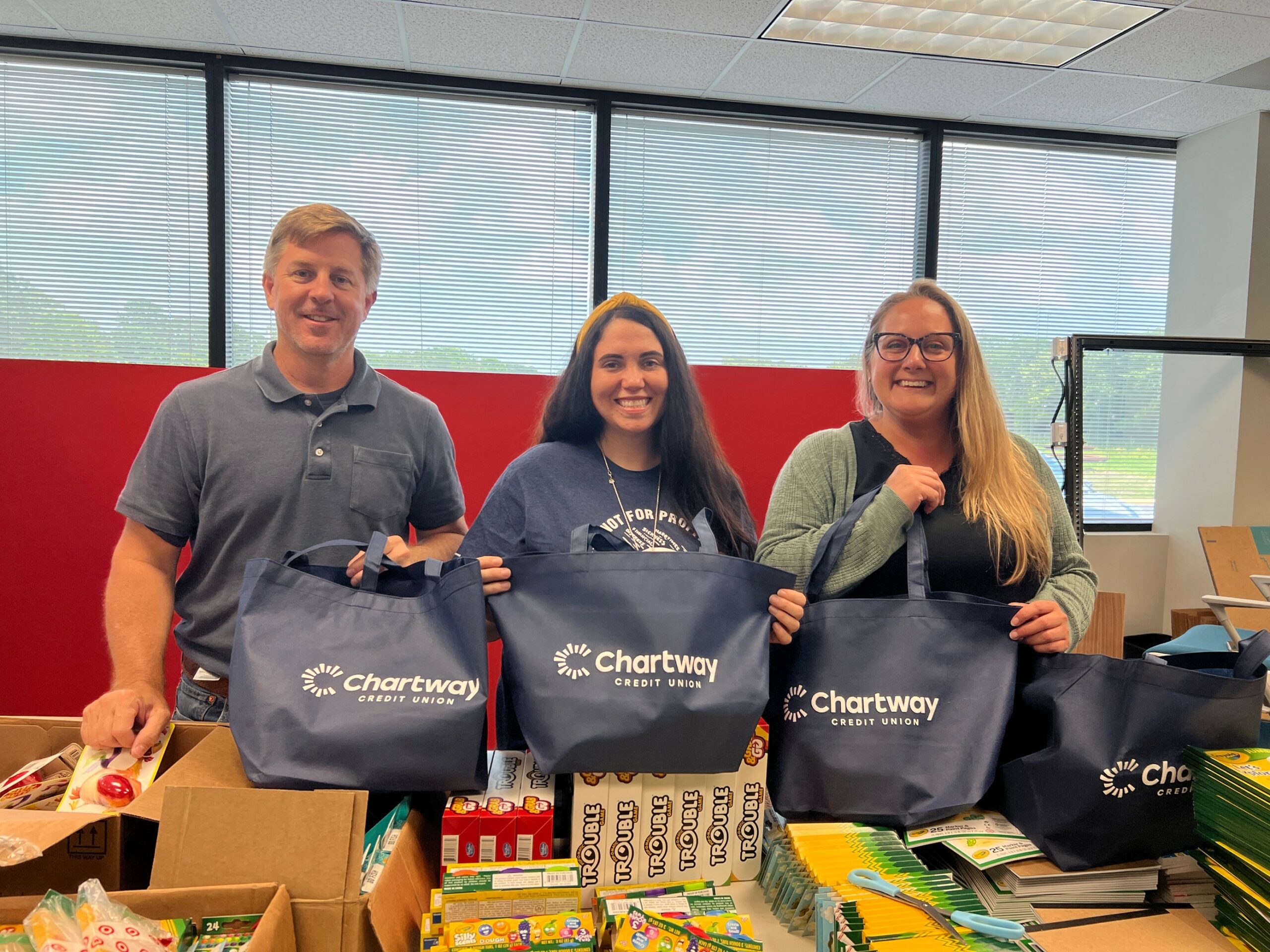 The Chartway Credit Union DE Team had an action-packed day creating activity bags for children staying at their local children’s hospital. Together, they packed over 100 activity bags to bring some joy, hope and smiles to children in the hospital.