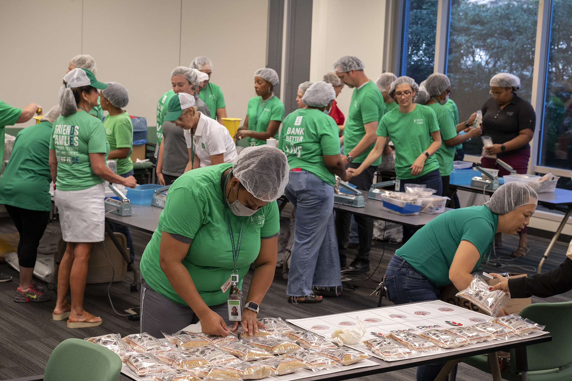At Coastal Credit Union in Raleigh, more than 180 employees collaborated to package 55,000 meals for Rise Against Hunger. The event marked Coastal’s 55th anniversary and was coordinated by their DEs.