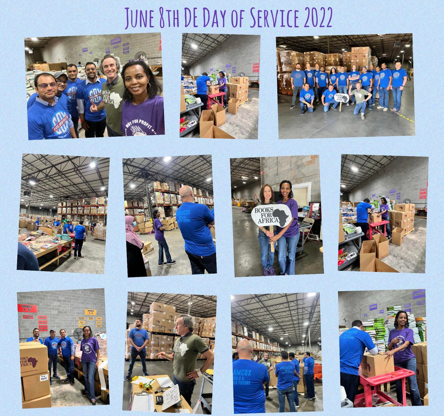Wongel Worabo of Associated Credit Union spent the day sorting and packing books at the Books for Africa warehouse, meeting volunteers from other organizations who were volunteering there for the first time.